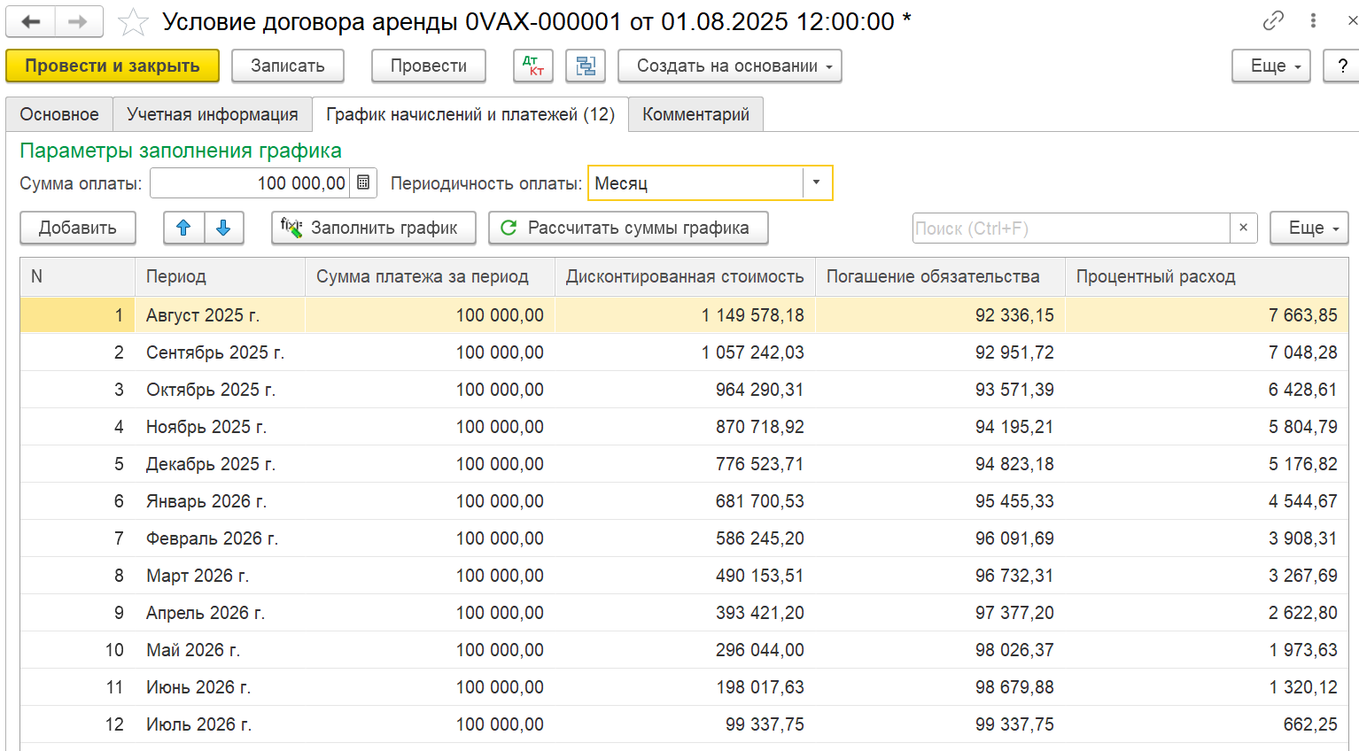 - использовать графики начислений и платежей, гибкие условия их формирования.
