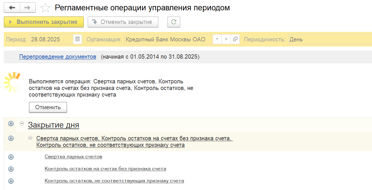 - Банковские регламентные процедуры;