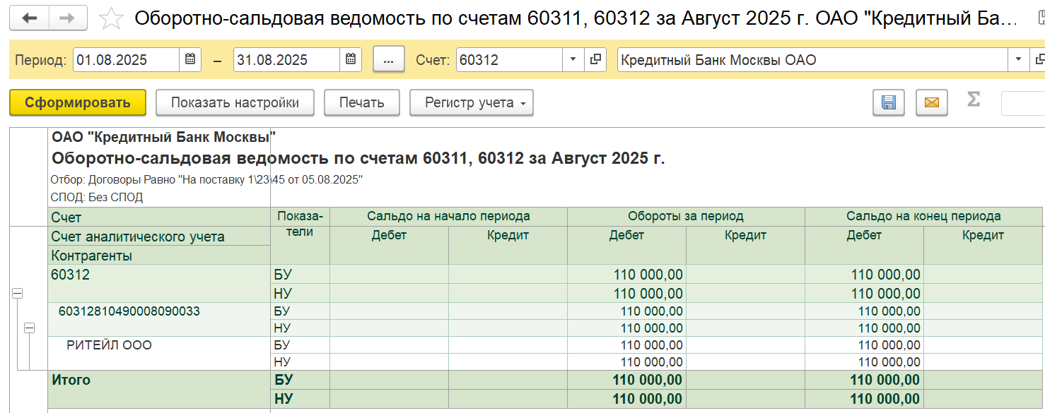- контрагент и договор.