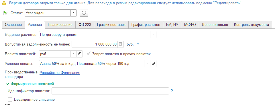- нестандартные условия оплаты (часто встречающиеся во внешнеэкономических контрактах) могут быть реализованы через универсальные процессы, учитывающие при оплате разнообразные события и условия.