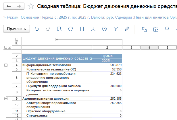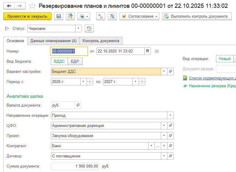 Лимитирование доступно в пространстве трех бюджетов: БДР, БДДС, бюджета движения ресурсов с использованием следующих объектов аналитического учета:
