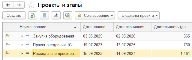 - разнести документы "Резервирование бюджета" по этапам проекта;