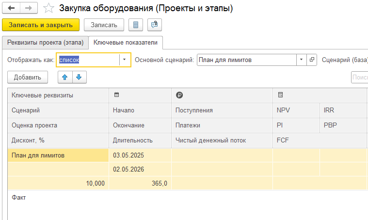 По данным проектных бюджетов автоматически рассчитываются их ключевые показатели эффективности (NPV, IRR, срок окупаемости, индекс прибыльности и др.).
