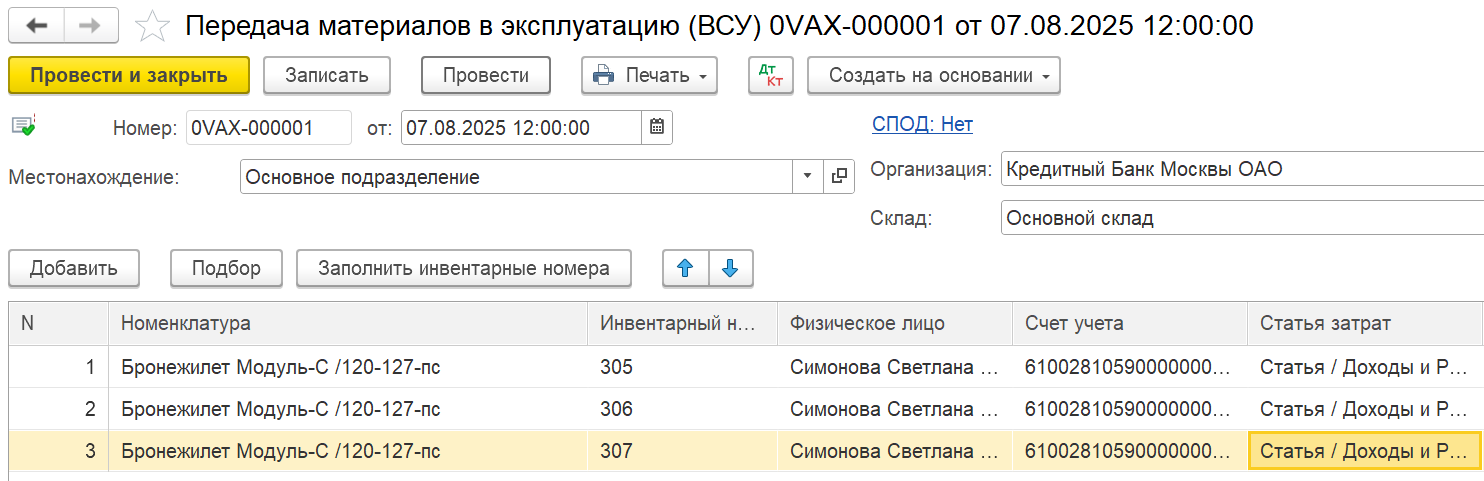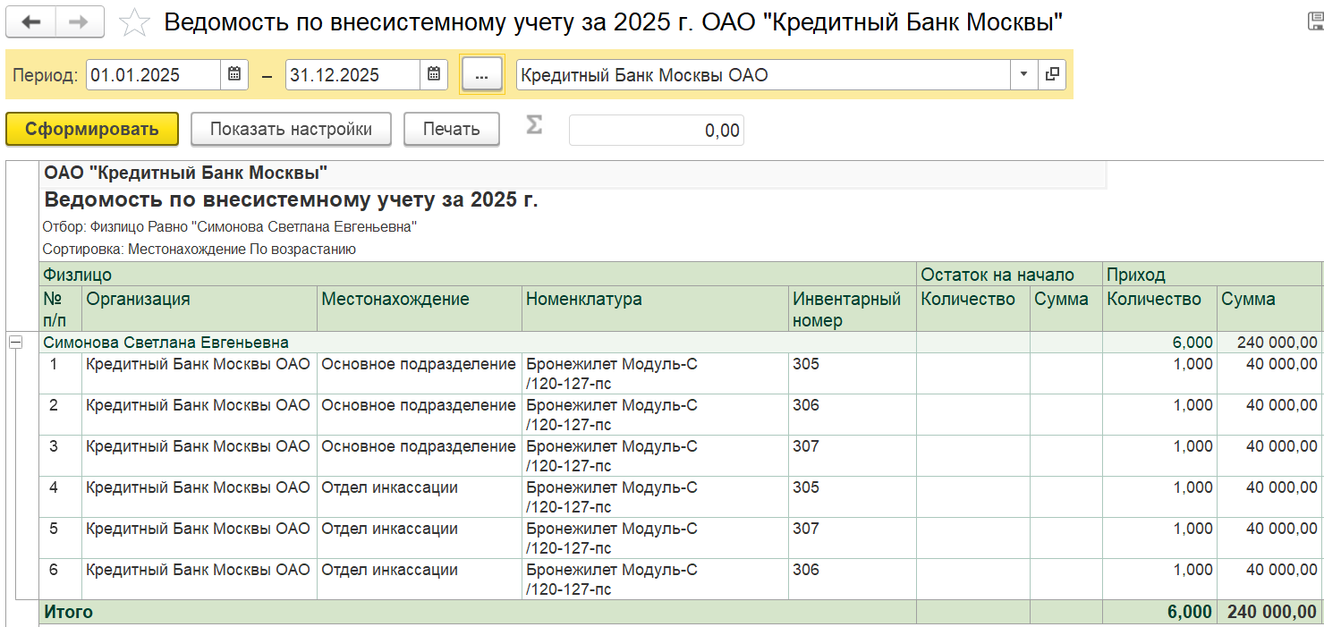 - Внесистемный учет материальных ценностей;